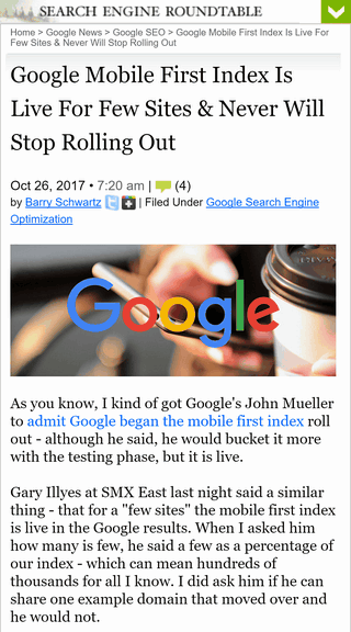 まだまだテスト段階だと言われていたグーグルのMFI(モバイルファーストインデックス)だが、一部のサイトですでに本番運用されているということをグーグルが明かした。