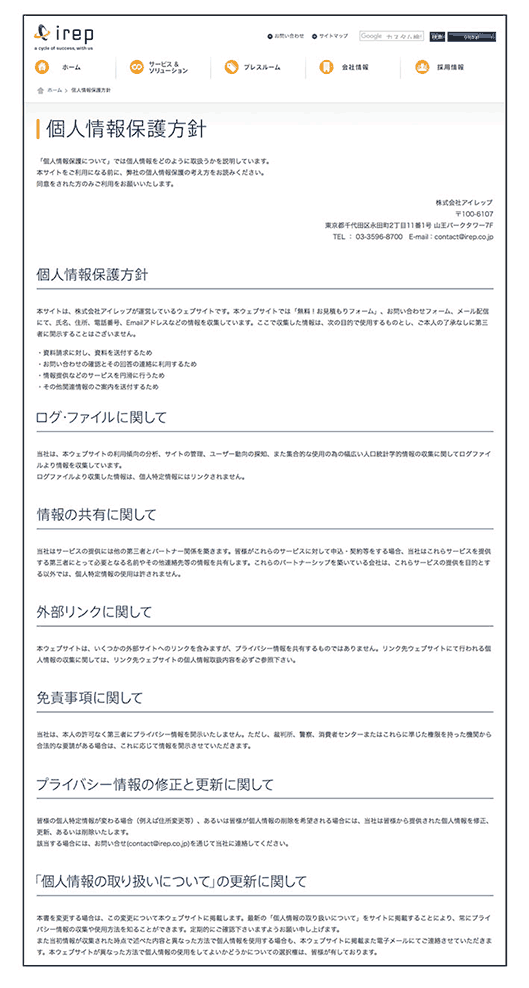 個人情報の取り扱いに関するポリシーを企業として定めて、サイト上に公開しましょう。