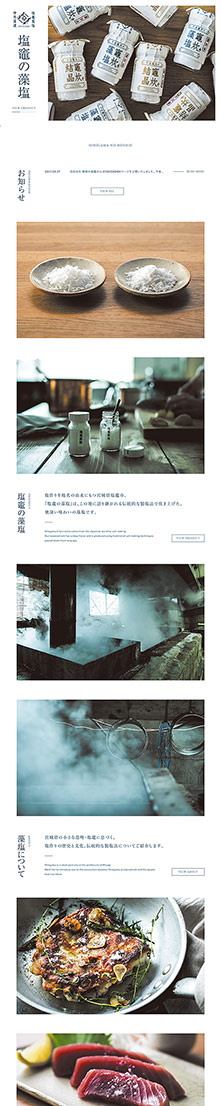 「塩竈の藻塩」図4は、これでもかと言うほど、シズル感のある写真を連続して配置しています。シンプルながら情報の密度に余裕を持たせ、商品のイメージや世界観を大きな画像や見出しによって構築しています。
