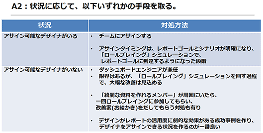 適切なデザインを実現しようとしたとき、「アサイン可能なデザイナがいる」「アサイン可能なデザイナがいない」という2つの状況がありえる。どちらの状況でも、それぞれに応じた手段をとることが大切だ。