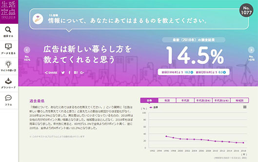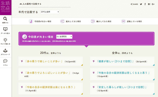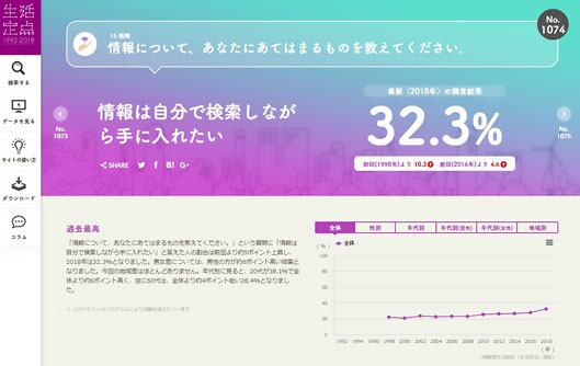 「生活定点」調査のほぼ全てのデータを無償公開する「生活定点WEBサイト」も、2018年調査結果を加えてアップデートされた。